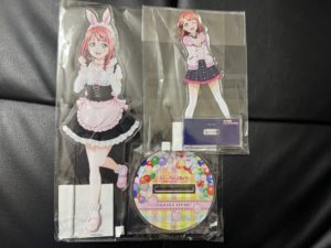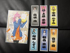 フェア特典のステッカーと璃奈ちゃんのバースデーポストカード。