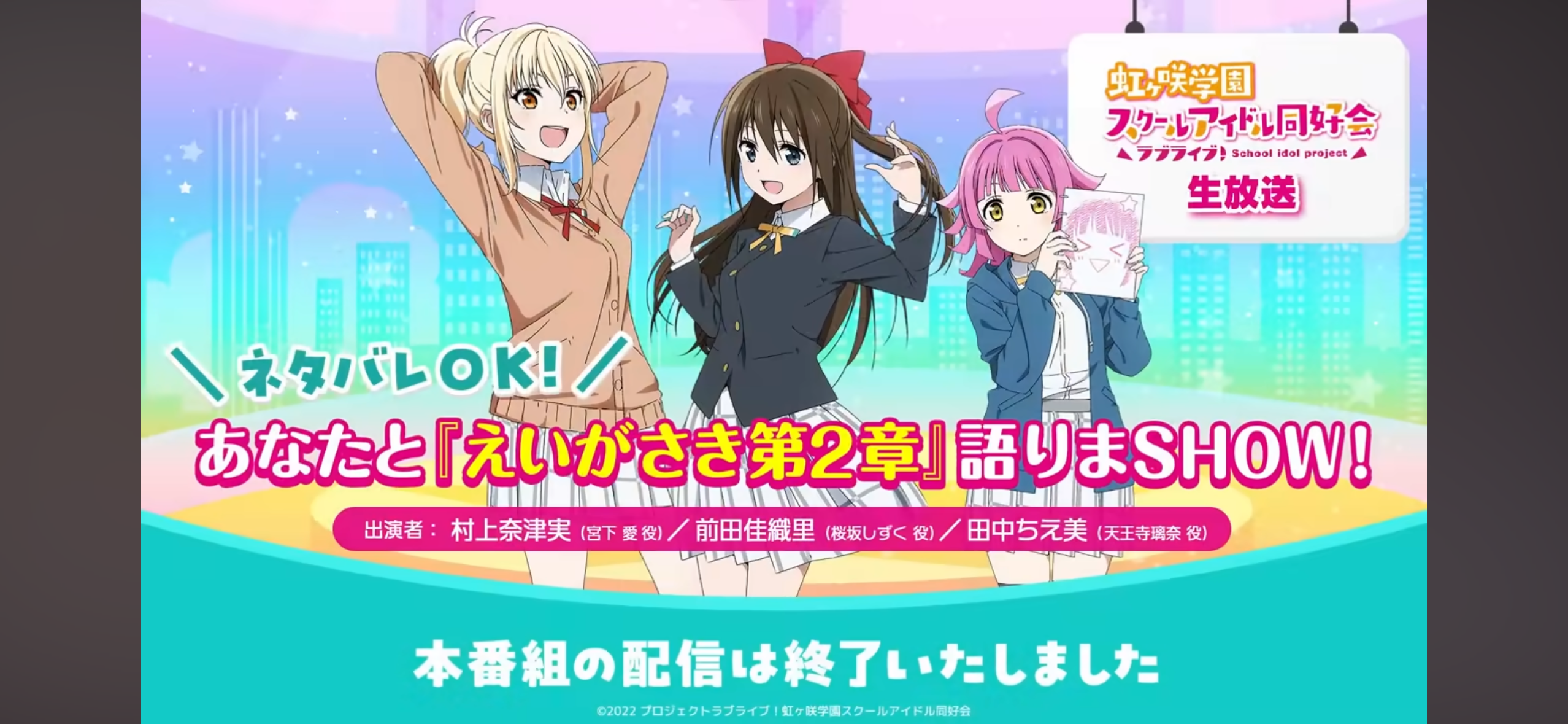 帰宅後、映画を観るまで視聴を控えていた虹ヶ咲の生放送のアーカイブを視聴しました。