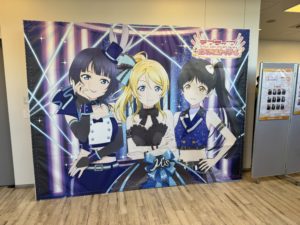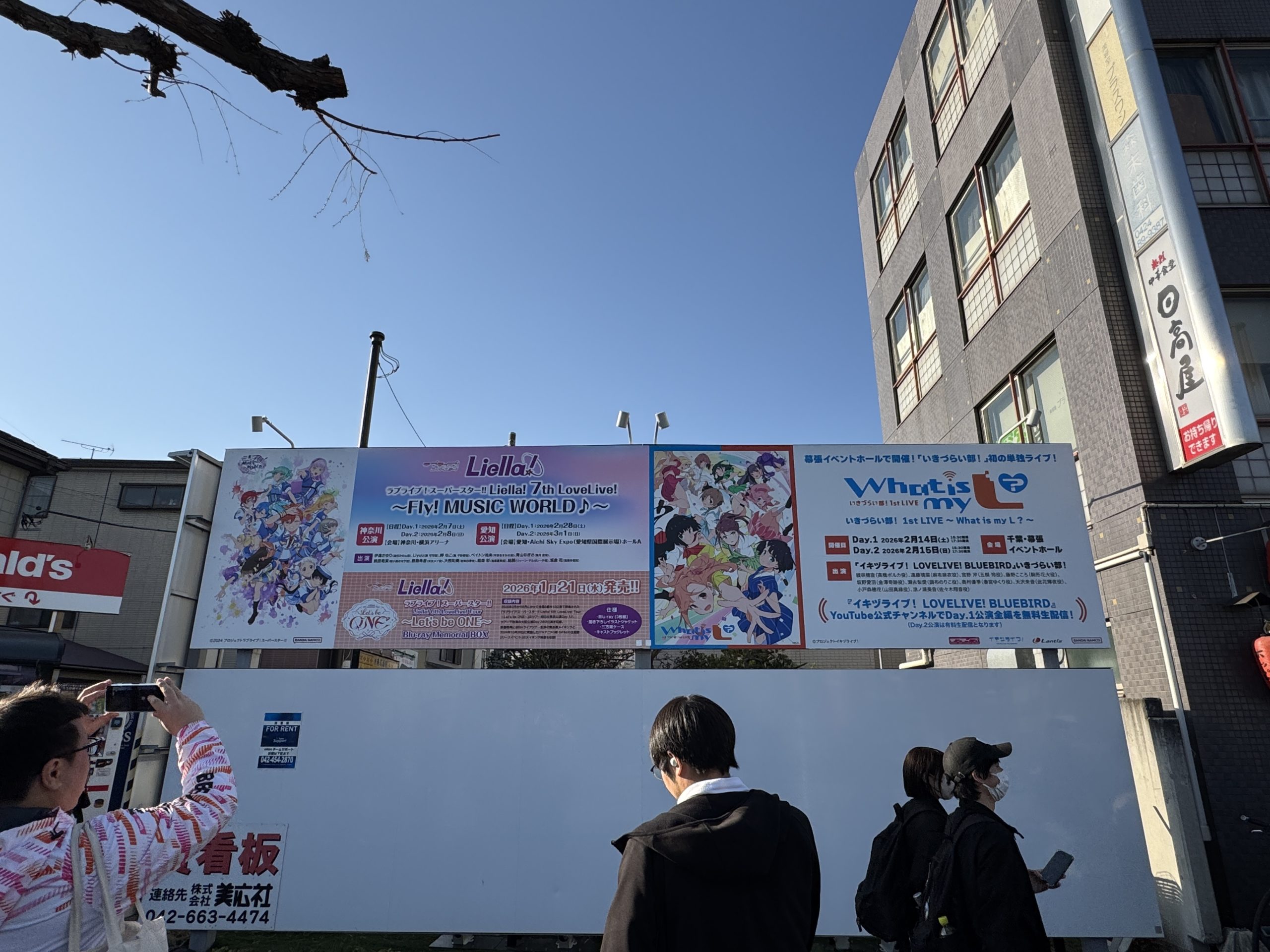 飛田給に着くと、いきづらい部!とLiella!のライブ告知の広告。