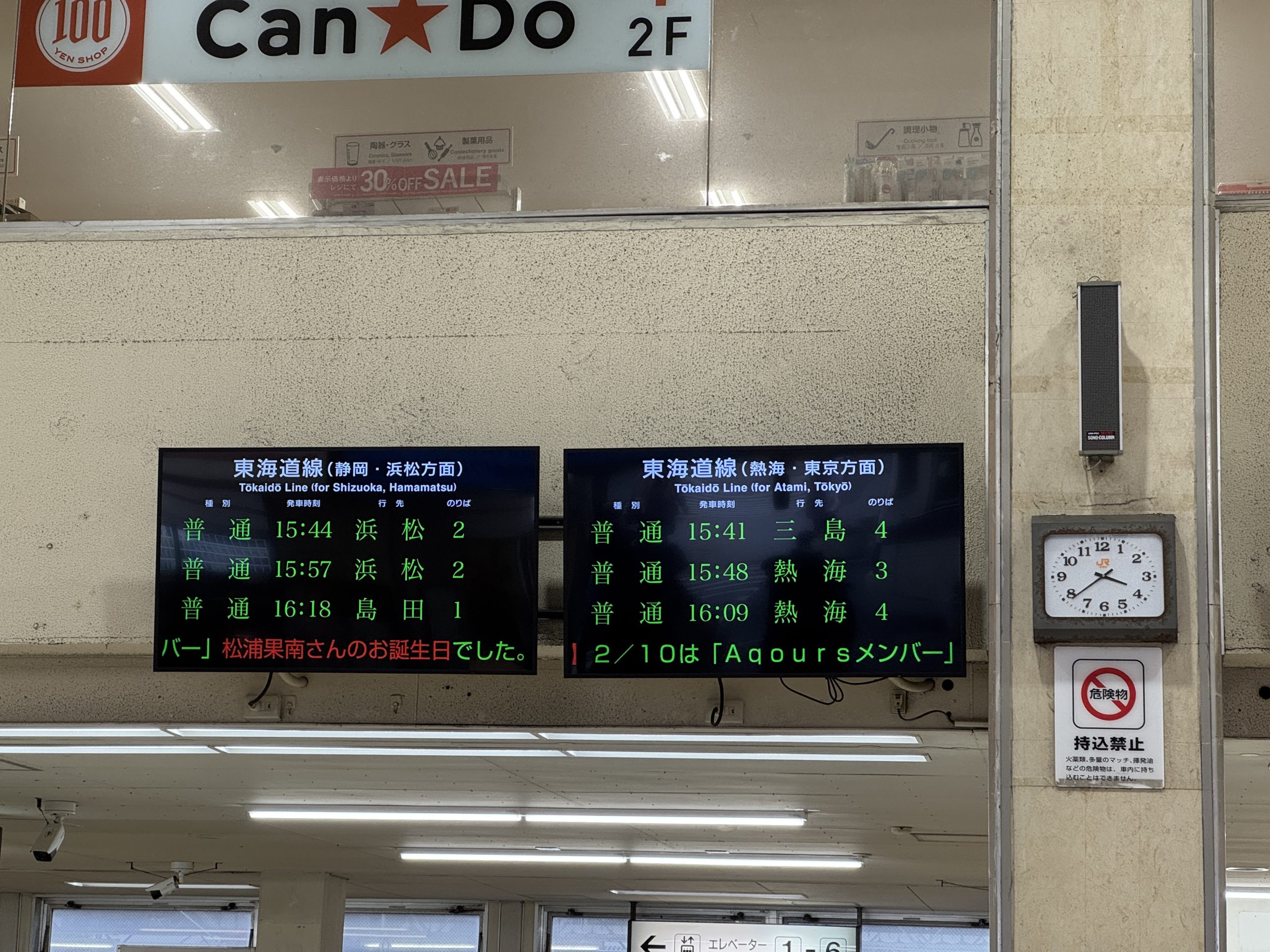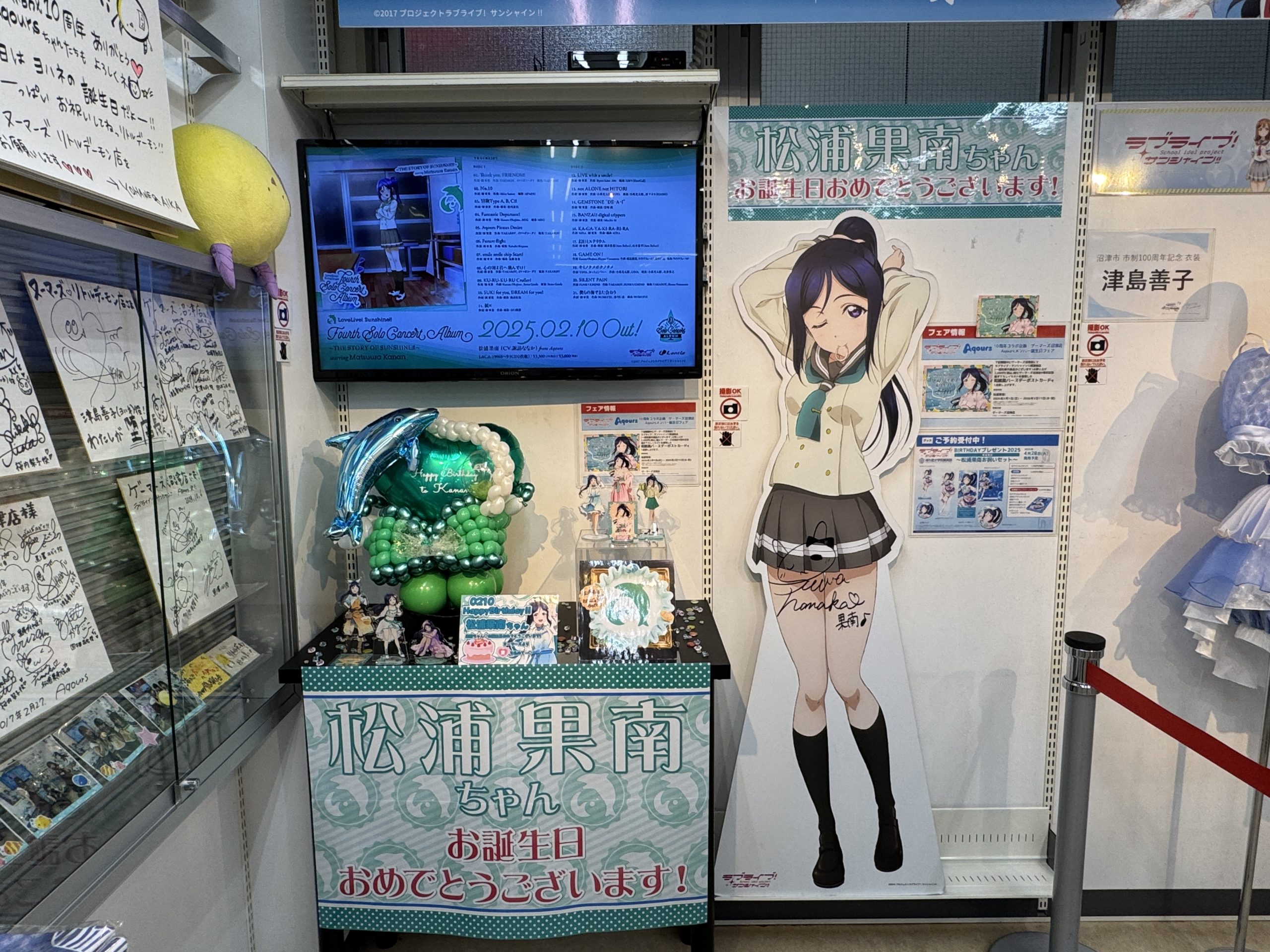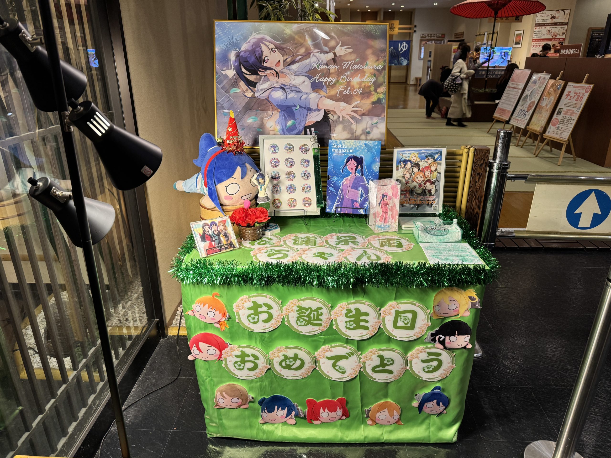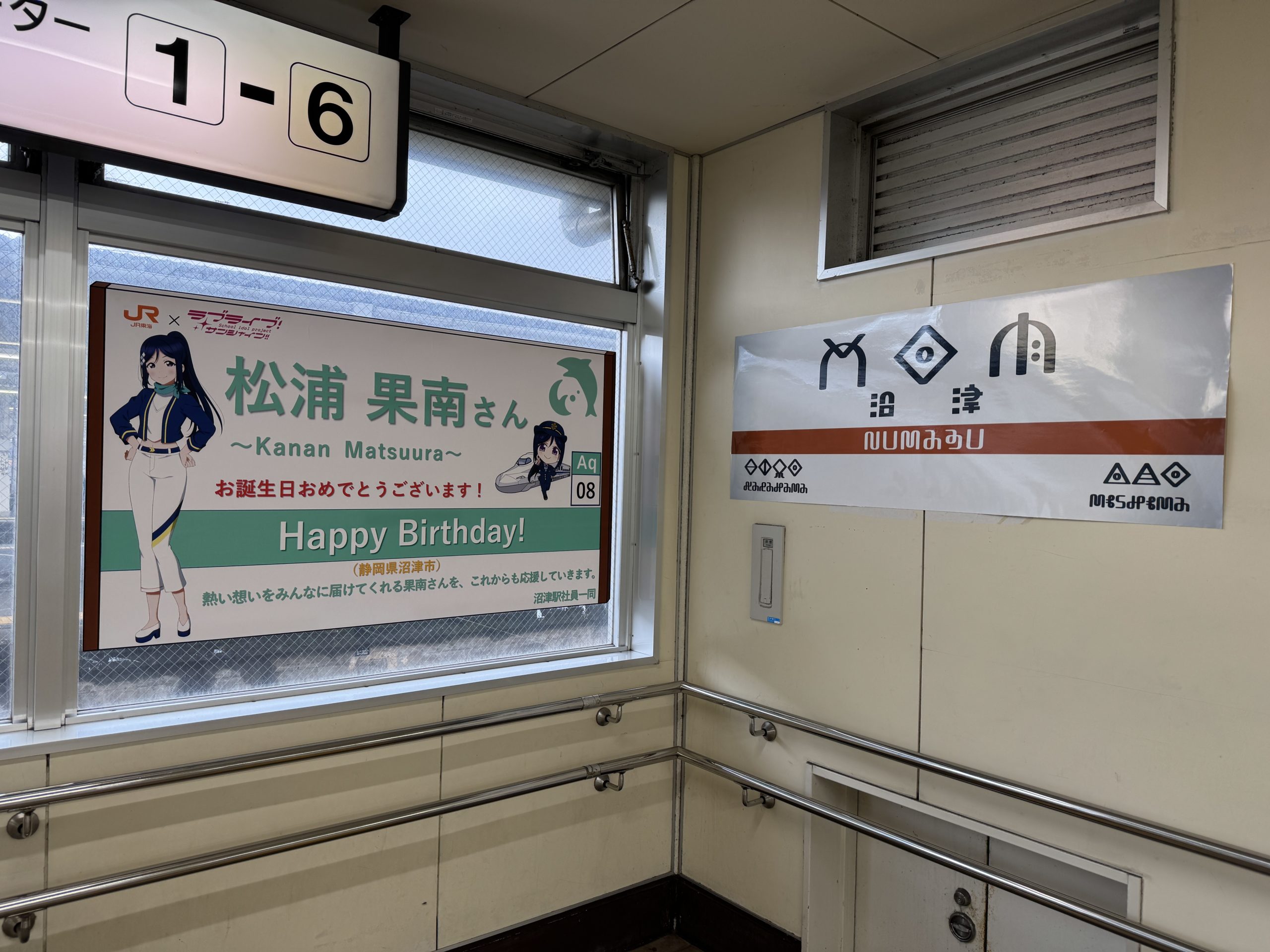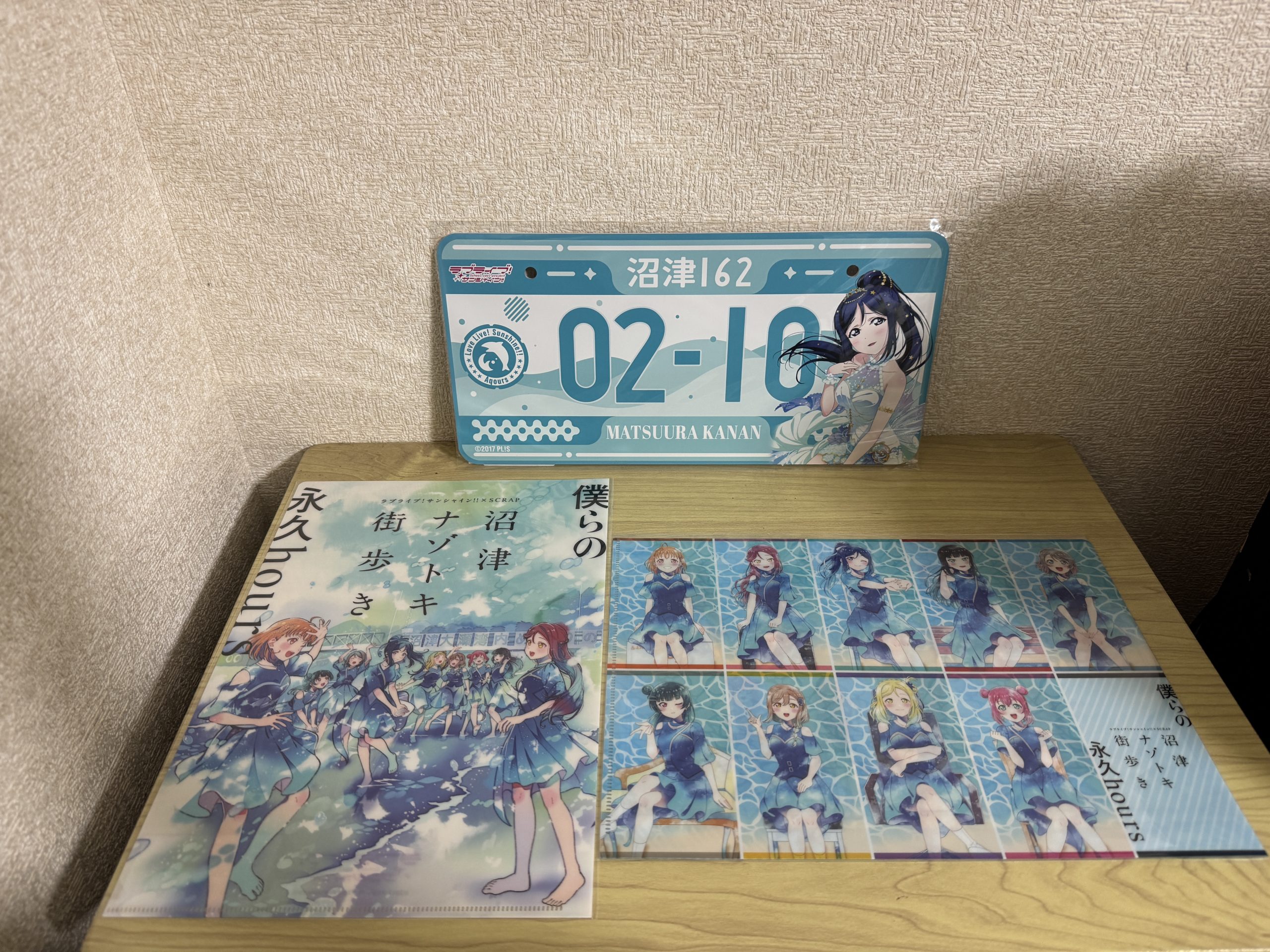 【2026年2月11日】39日ぶりの沼津 松浦果南生誕祭 2026 日常 X Facebook はてブ LINE コピー 2026.02.12 2月10日は松浦果南ちゃんの誕生日です。 ちょっと遅れてしまいましたが・・・ Happy Birthday Kanan. 思っていたよりも目立った渋滞が無かったので、3時間ほどで沼津内浦に到着。 いけすやに立ち寄り、「活たい丼」を食べました。 <三の浦総合案内所> <三津海水浴場> <アニメイト> <ゲーマーズ> <沼津駅> <沼津駅周辺> プレミアムショップで買ったもの。 謎解き各種クリアファイルと果南ちゃんのナンバープレート。 購入特典のブロマイド。 年明けに新たに追加されたまちあるきスタンプを押印。(4箇所中3箇所対応) 帰り際に万葉の湯に立ち寄って、果南ちゃんの誕生日祭壇を撮影。 次回は3月上旬か中旬ごろに行けたら行きたいと思っています。